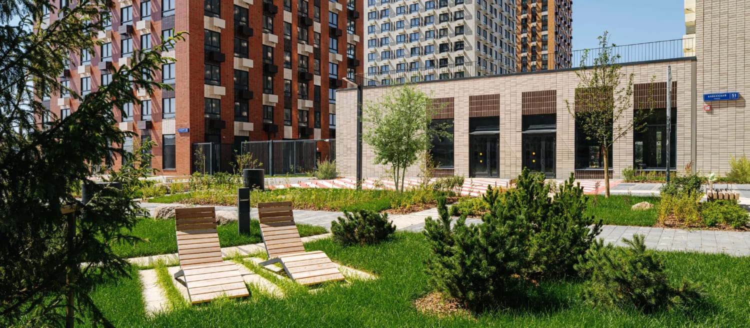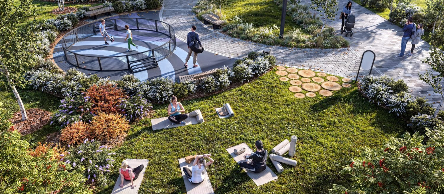 В уютных дворах-парках есть места для отдыха и детские площадки. Для прогулок на свежем воздухе предусмотрен пешеходный бульвар. Бульвар продуман до мелочей — здесь каждый найдет занятие по душе. Любители спокойного досуга могут расположиться на удобных скамейках или шезлонгах — здесь можно отдохнуть или поработать за ноутбуком на свежем воздухе. Для активных жителей оборудована зона настольного тенниса, где можно поиграть с друзьями и соседями или сделать утреннюю зарядку на специальной лужайке. После рабочего дня здесь приятно размяться и снять напряжение. Маленькие жители оценят современные детские площадки с каруселями, горками и лазательными комплексами.