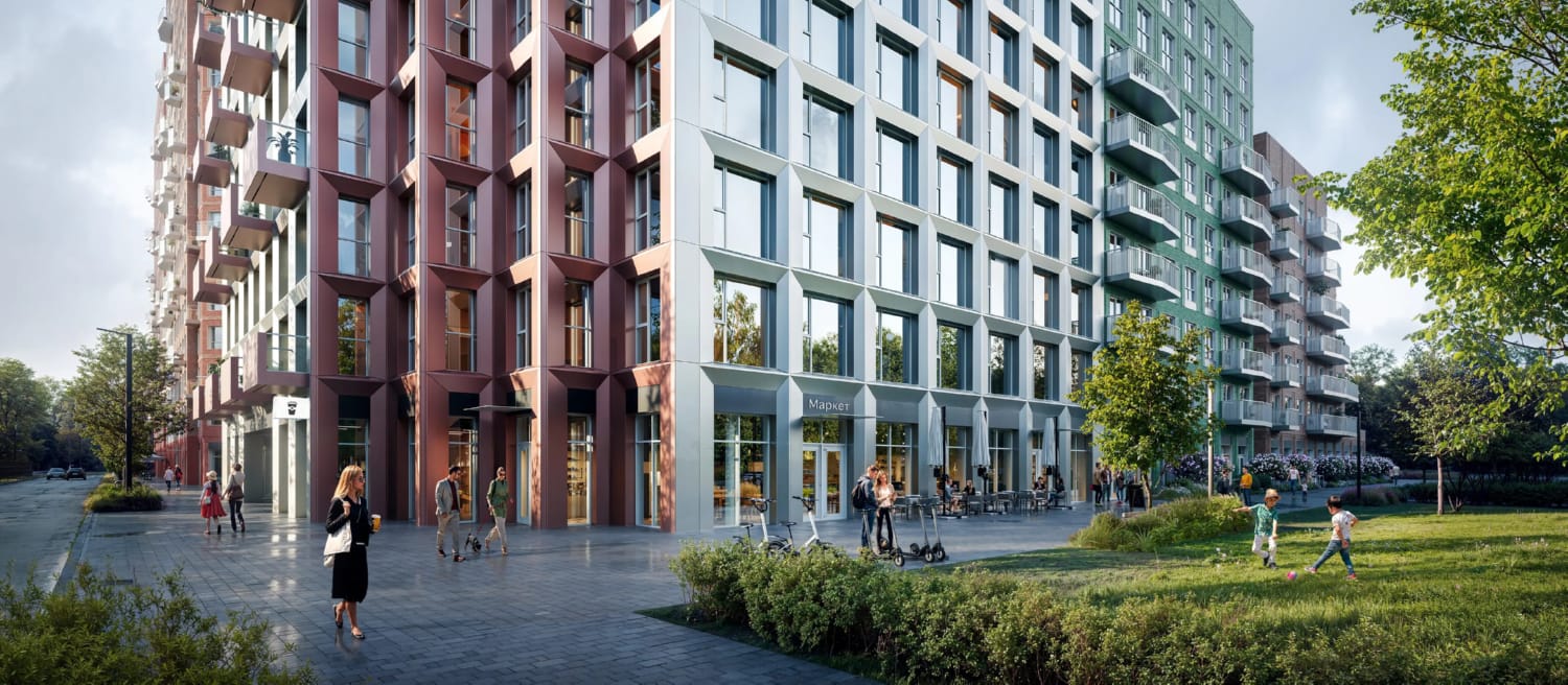В безопасных подъездах можно будет оставить велосипед или коляску. На первых этажах откроются кафе, магазины, пекарни и другие сервисы — за кофе и завтраком можно будет просто спуститься на лифте.