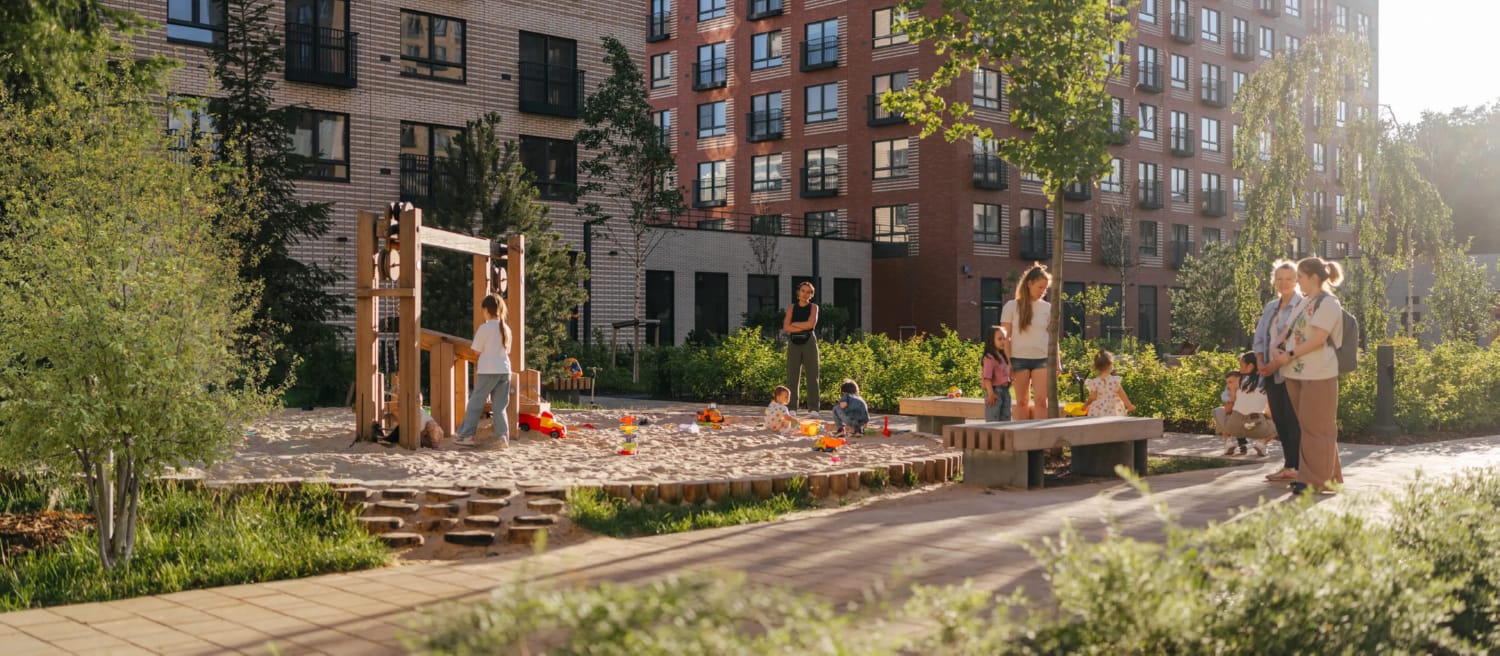 В уютном проекте «Барклая 6» восемь жилых домов с переменной этажностью — 12, 24 и 32 этажа, подземный паркинг, детский сад на 125 малышей и начальная школа на 225 детей. Внутри квартала появится приватный парк для жителей, где можно гулять, играть на детских и спортивных площадках. На территории парка будет Wi-Fi, в лавочках предусмотрены разъёмы для USB-зарядок.